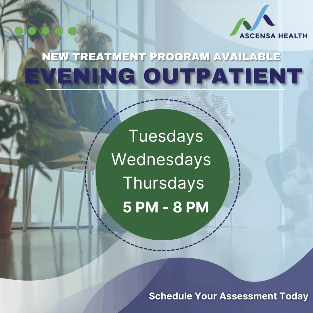 We’re excited to introduce our Evening Outpatient Treatment Program, thoughtfully created for individuals balancing work, school, or family responsibilities. This flexible option ensures you receive consistent, high-quality support without disrupting your daily commitments.